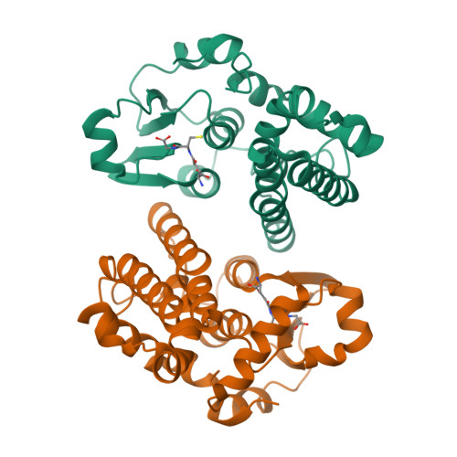 According to the pdb structure of Trametes versicolor glutathione transferase Omega 3C (6SRB), the protein forms a homodimer.