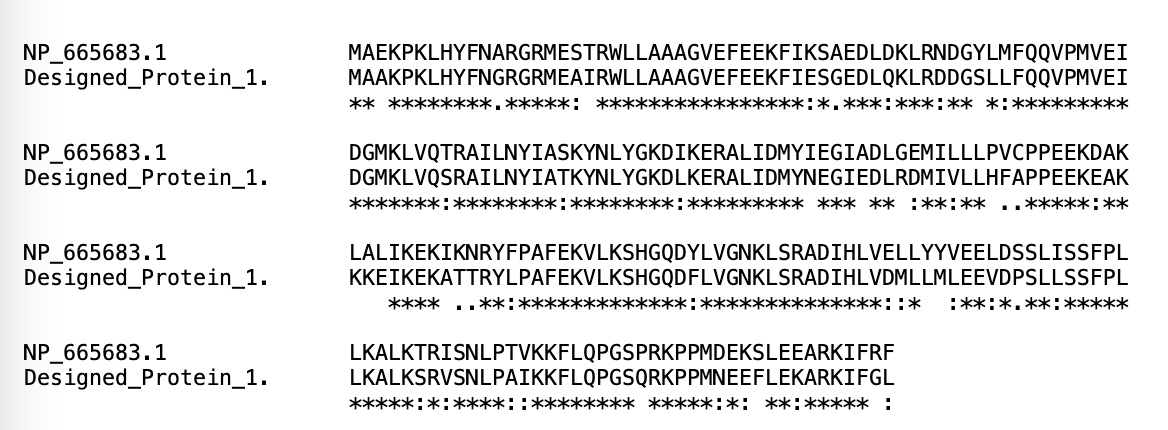 Not surprisingly, a structural alignment of human glutahione S-transferase A1 and design 1 using ChimeraX showed a nearly perfect match.