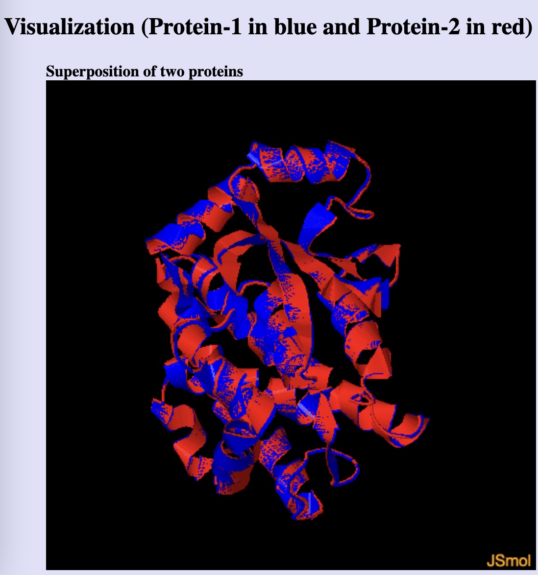 The website interface allows the comparison of two structures (after converting the AlphaFold cif file output into a pdb file using openbabel).