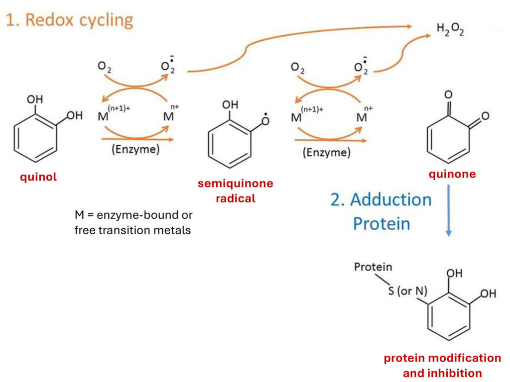 Autooxidation of catechol quinol and covalent binding to reactive cysteines in proteins (Figure derived from Chen and Li (2019))